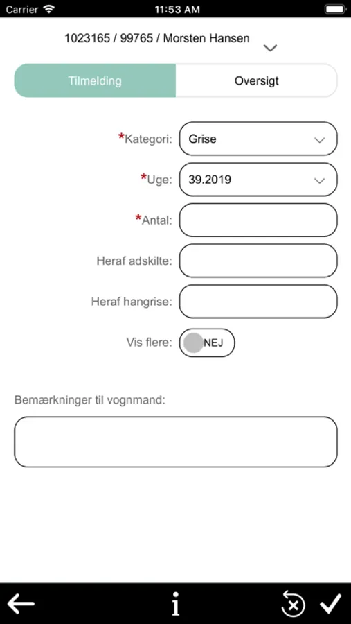 Appen husker dine oplysninger, og du skal derfor kun bruge få klik for at tilmelde. Du kan kun bruge Ejer, hvis du er leverandør/ansat og har adgang til Danish Crowns Ejerside.