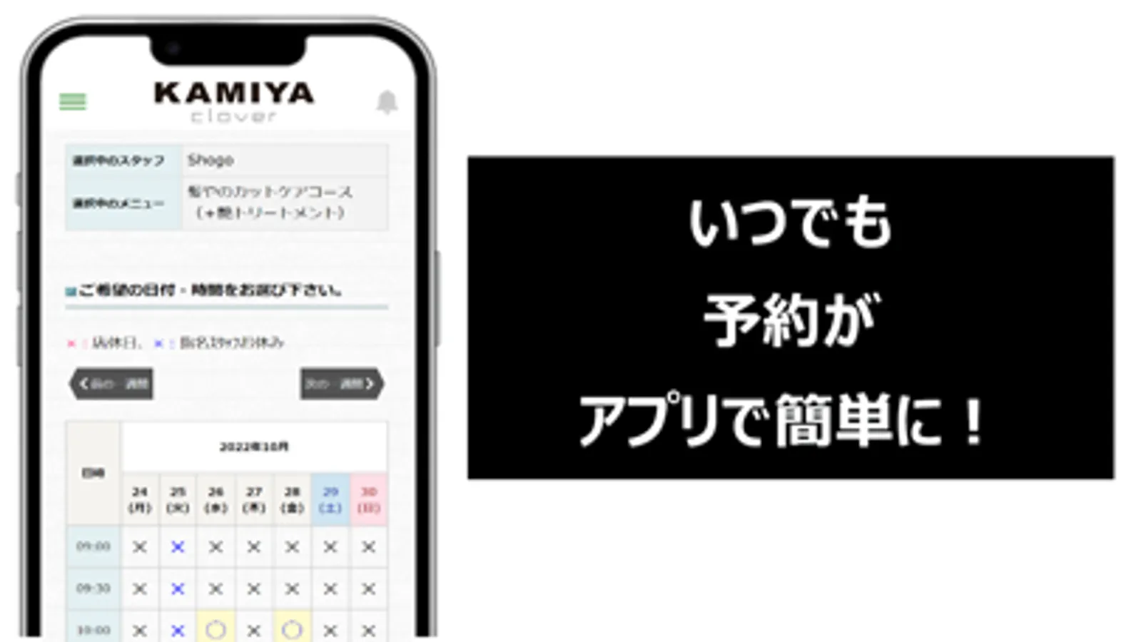 和風半個室美容室髪やclover(カミヤ クローバー)の公式アプリです。