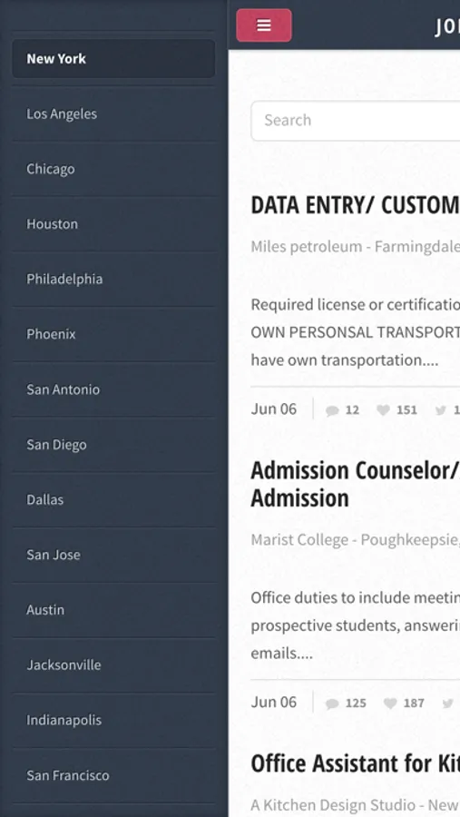 Find your next job in the US (New York, Los Angeles, Chicago, Houston, Philadelphia, Phoenix, San Antonio, San Diego, Dallas, San Jose, Austin, Jacksonville, Indianapolis, San Francisco, Columbus, Fort Worth, Charlotte, Detroit, El Paso, Memphis, Boston, Seattle, Denver, Washington, Baltimore, Louisville, Portland, Oklahoma, Milwaukee, Las Vegas, Albuquerque, Tucson, Fresno, Sacramento, Long Beach, Kansas, Mesa, Virginia Beach, Atlanta and Miami)