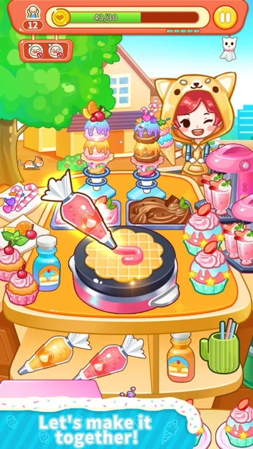My ice cream restaurant ready for customers delicious ice cream every day, both delicious and good-looking, customer too much, really busy. In order to meet the requirements of every customer, you have to speed up.