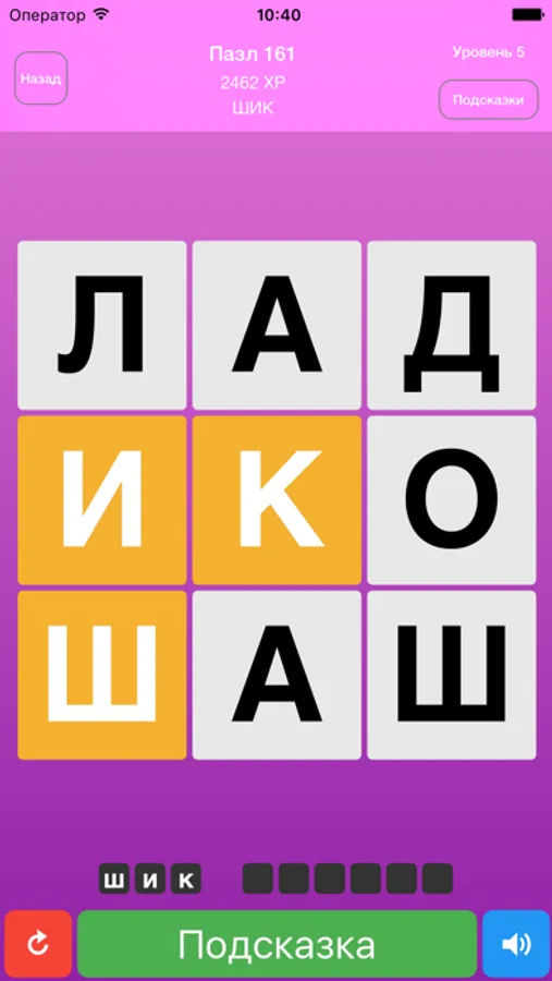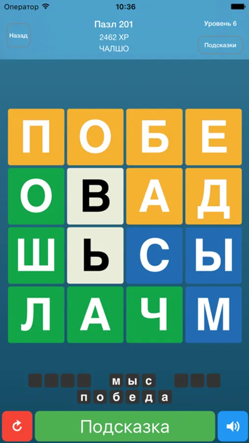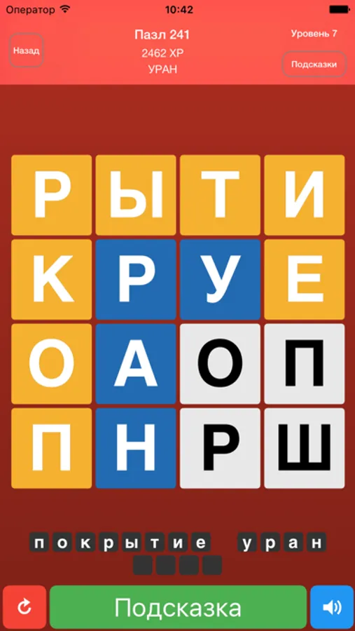 Если на поиск слова у вас уходит много времени можно воспользоваться подсказкой.