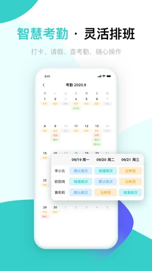 3.移动签到,日常考勤与销售外勤管理一手掌控。