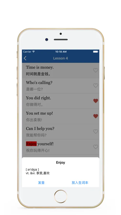 零基础英语也可以学,陌生单词长按即可离线查询,还有发音及放入生词本功能。