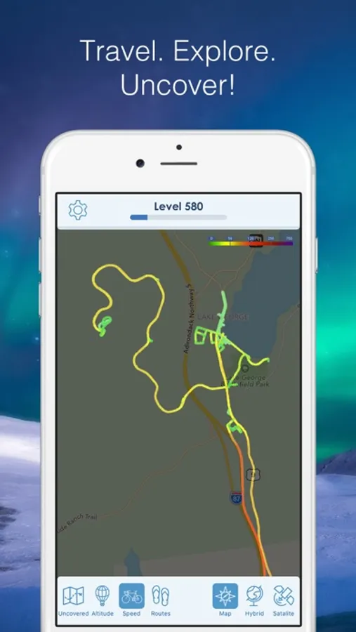 World Uncovered tracks your travels for you and maps them in vivid detail. It will show you where you’ve been, how fast and how high you were going, and how often you’ve returned to your favorite places. Can you walk every block in your city? Climb all the mountains in your area? How many countries have you visited? What landmarks have you seen? Find out, with World Uncovered.