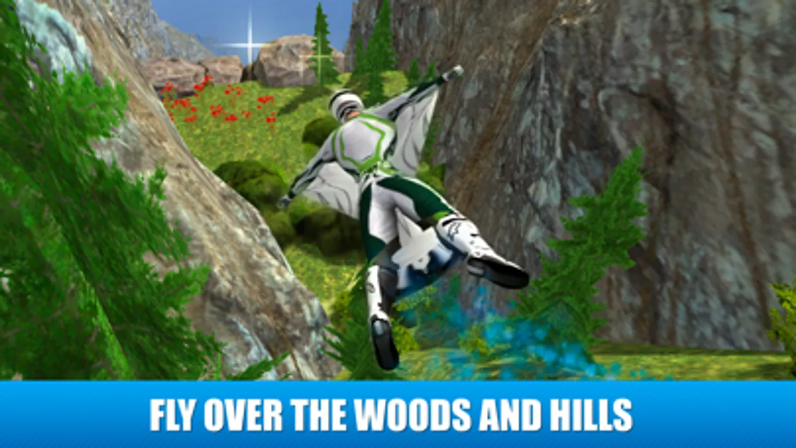 Fly over the valleys, plains and hills, feel the wind and have fun with Wingsuit Sky Dive 3D!