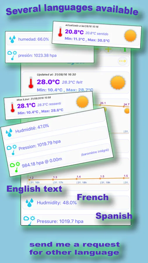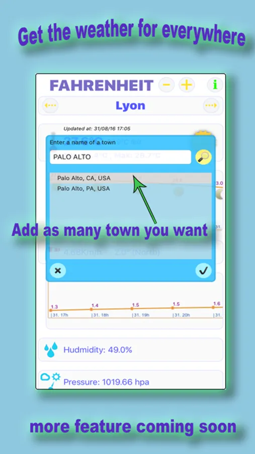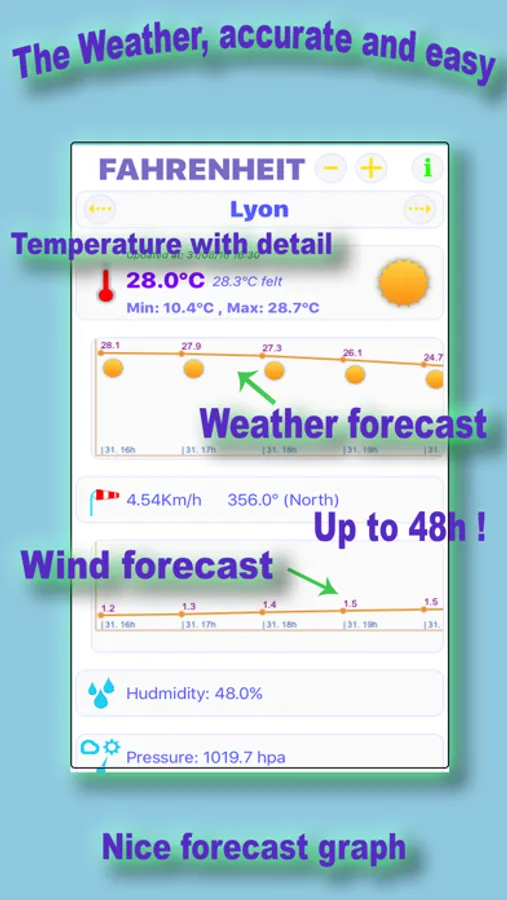 you will be able to add cities where you want to get the weather and view the hourly forecast for the next 48 hours.