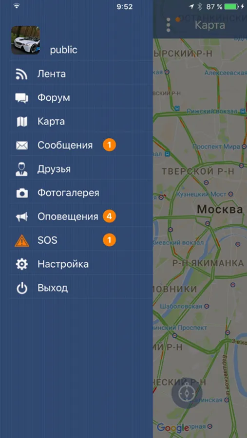 Если случилась беда или потребовалась помощь соклубников - нажмите SOS.