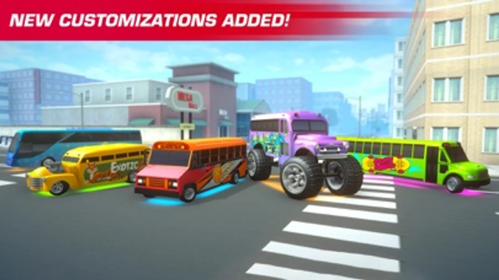 - Customise your School Buses, Sports Cars, SUVs and Muscle cars with Decals, Spoilers, Rims, and Neons!