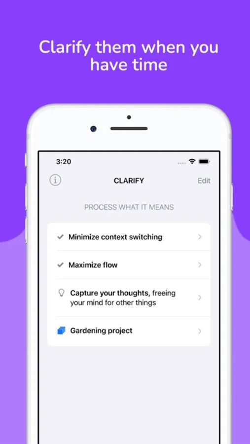 • No prior knowledge of GTD is required. Even if you don't have any earlier experience with the GTD-system, Clair will give you support in adhering to the system, by simply using the app and following its workflow.