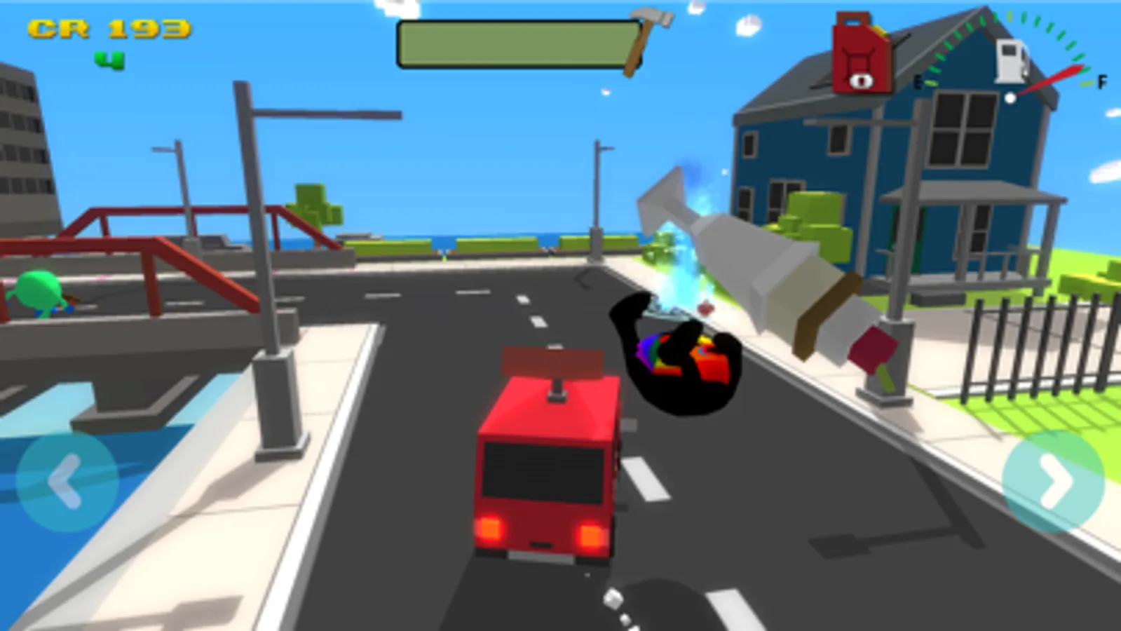 Something must have really annoyed you. Drive your car across the city and along the coast and hit as many of the 'Flump' Citizens as you can. Smash oncoming traffic out of your way. Collect coins to spend on the Prize-o-Matic machine to win new cars and spare fuel cans.