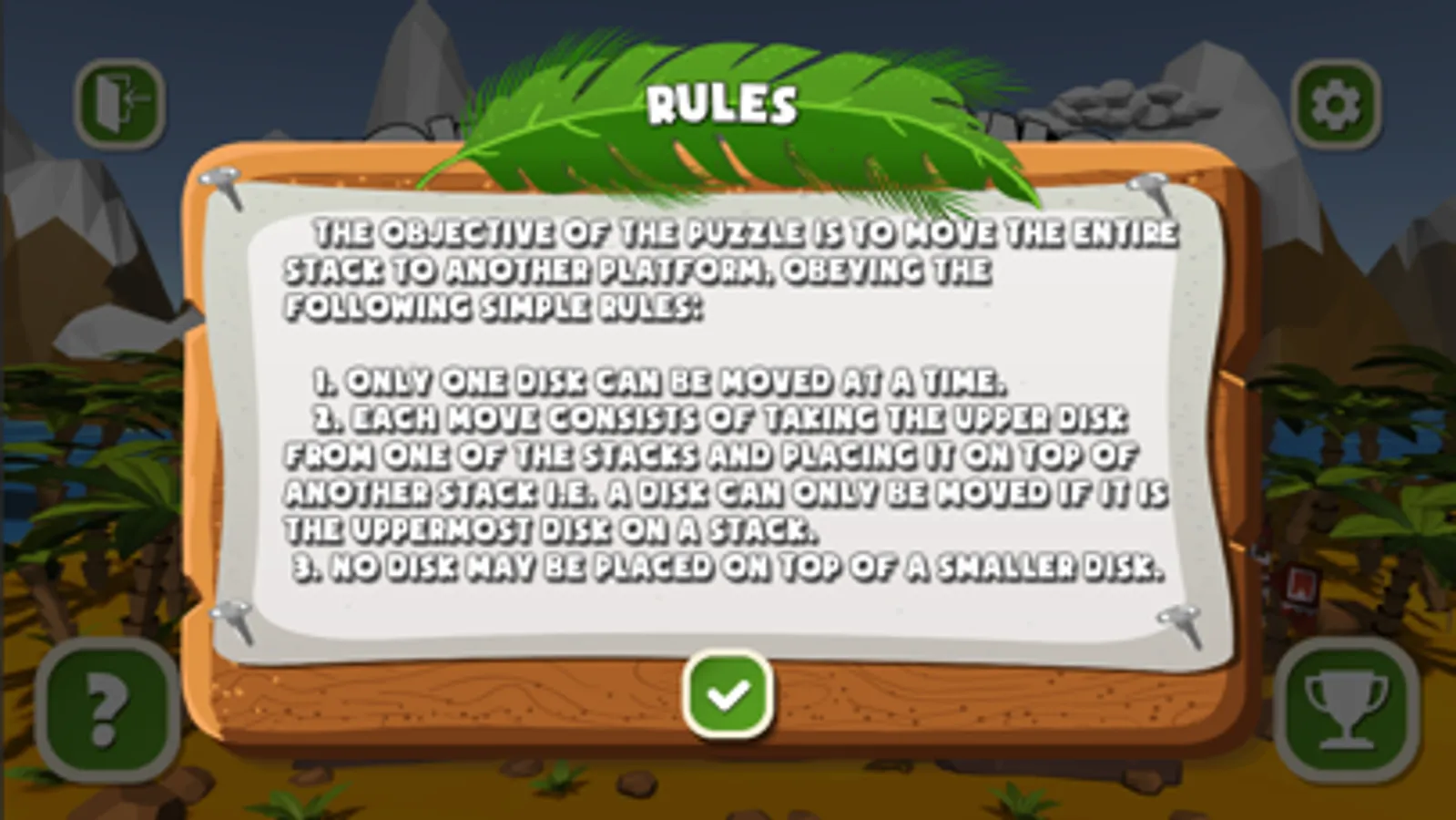Мета головоломки полягає у тому, щоб перемiстити пiрамiду з одного стрижня, на iнший, керуючись наступними правилами: