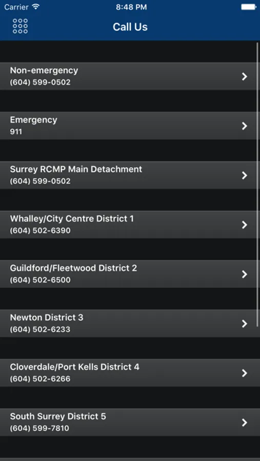 • Call Us – Have the Surrey RCMP’s non-emergency number, District Office phone numbers, and the Parent Helpline number at your fingertips.