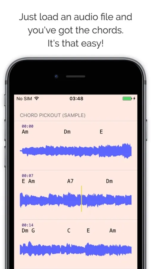 * Picks up chords of any music composition stored in your device