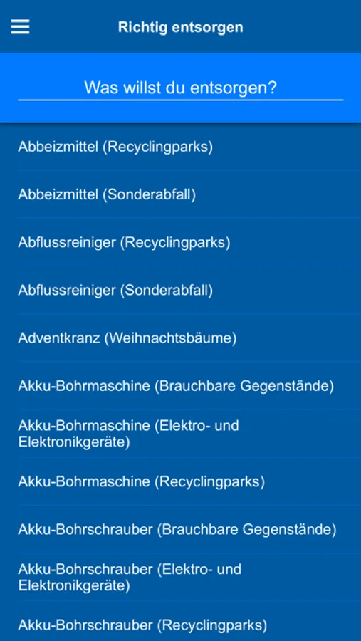 With the waste map you will always have the disposal location in view and the waste database will help you to decide where something should be disposed of.
