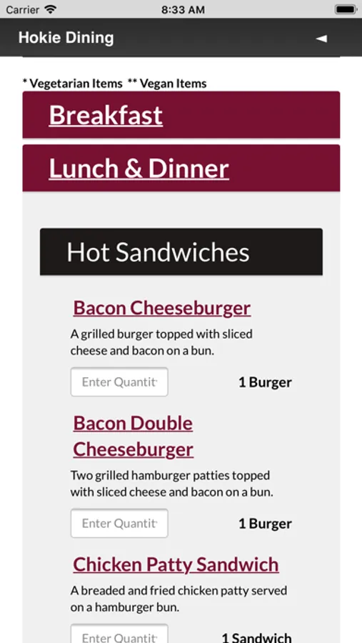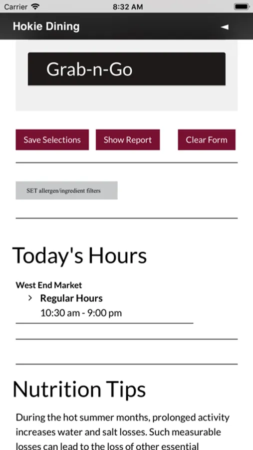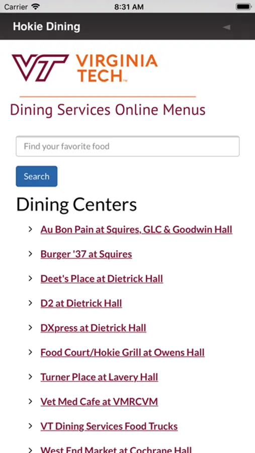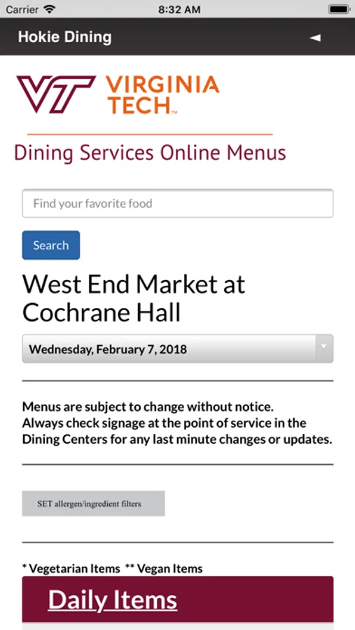 Hokie Dining gives you an easy way to check a week's worth of menus and nutritional information for Virginia Tech Dining Services' dining centers from your mobile device.
