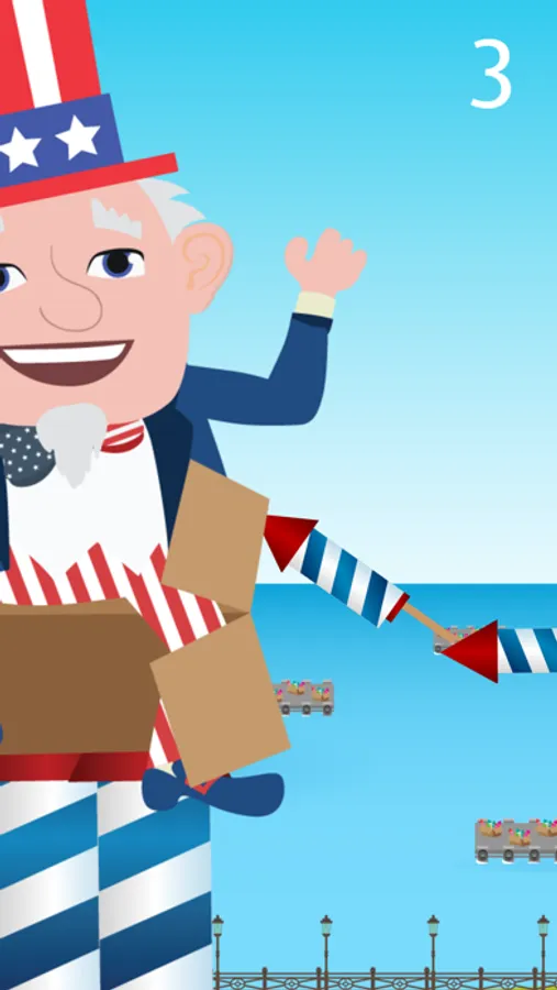 Help Uncle Sam collect all the fireworks he spilled into the box but don't let them touch the edges of the box or they will explode!