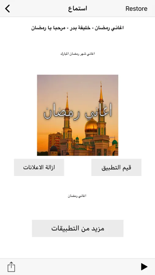 التطبيق يحتوى على اجمل اغانى رمضان القديمة و *الجديدة