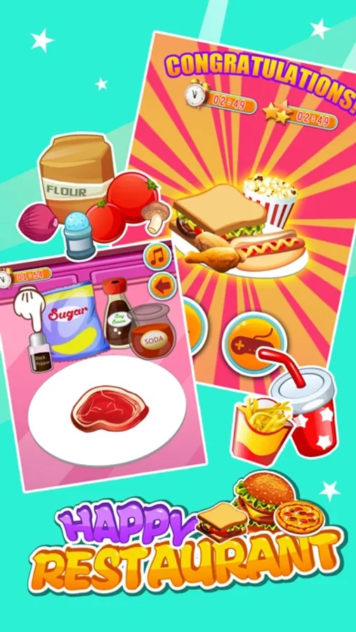 Hamburger,Pizza,Sandwiches,Yummy noodle! You want to quickly complete the production of those yummy foods.