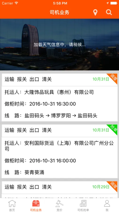 智慧物流运输App主要应用于司机对于订单的管理,业务的查询,实现订单的实时跟踪和反馈等功能。开启记录轨迹功能后,能够实时记录车辆的轨迹。同时还有个人信息管理,接收通知,抢单,竞价,留言板等功能。