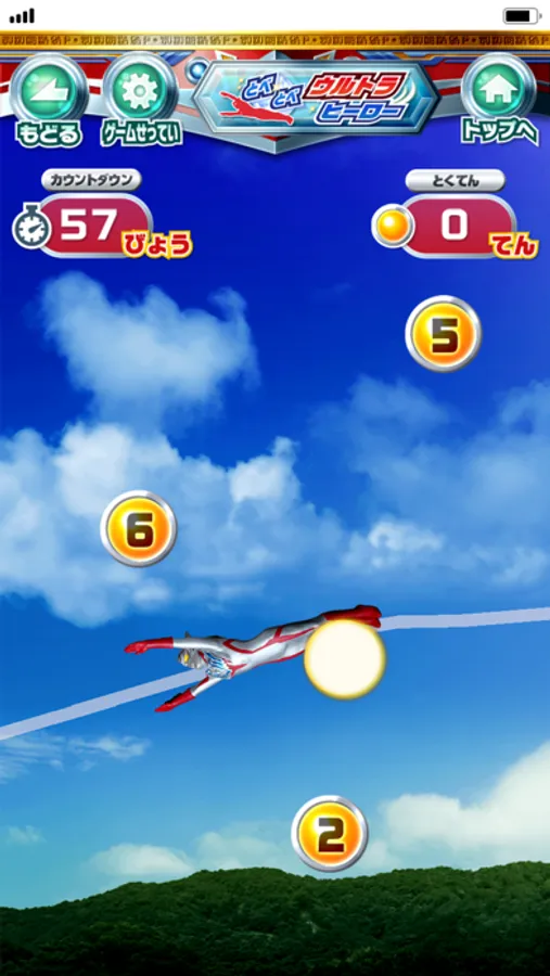 画面を指でなぞるとウルトラヒーローを飛ばすことができます。