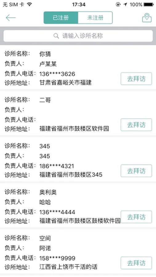 客户管理:查看客户信息以及客户拜访预约,同时能查看附近加盟的诊所;