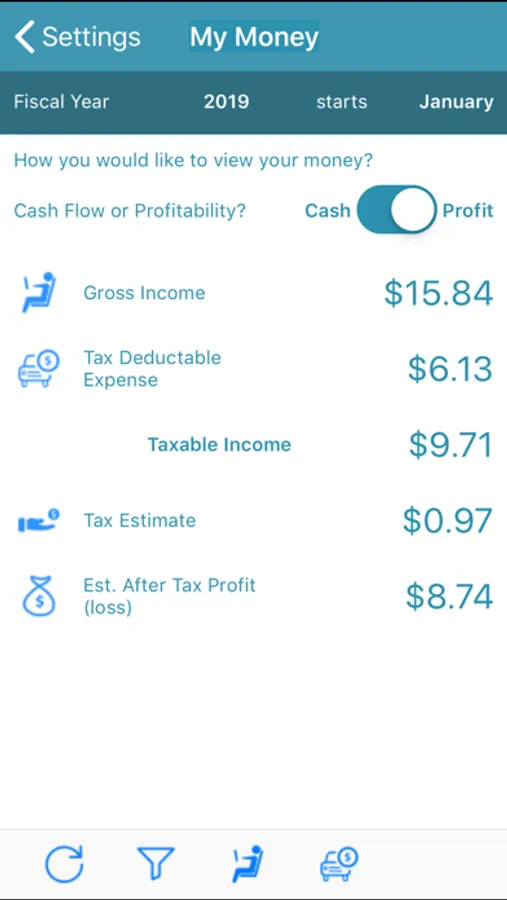 • My Money: entering all income and expense creates Profitability and Cash Flow estimates