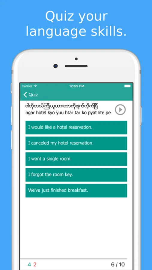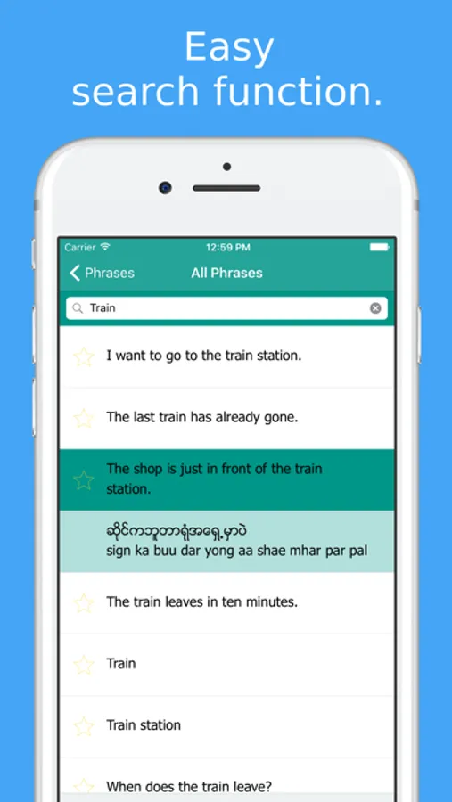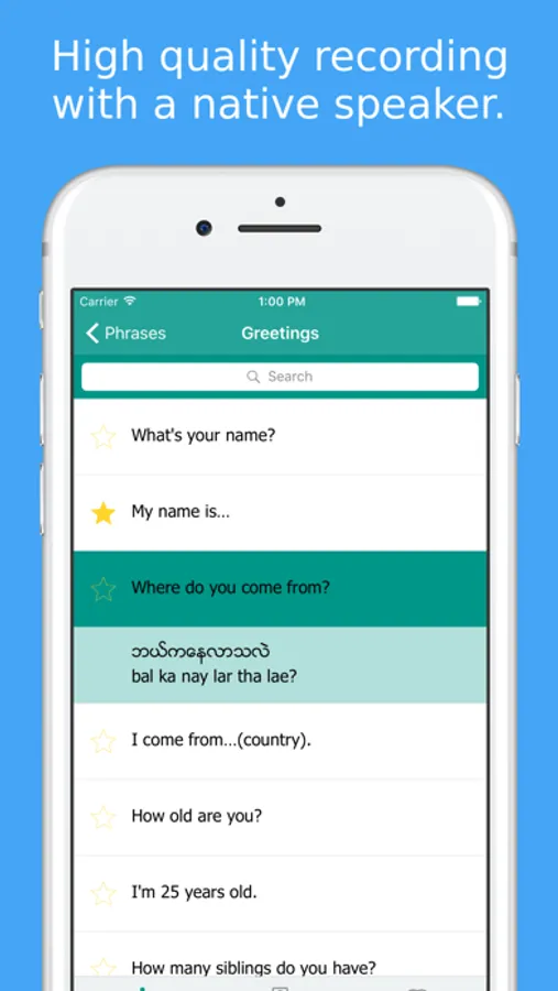 All Burmese phrases and words are presented to you in both phonetic and original Burmese writing. They are recorded by a native speaker from Myanmar.