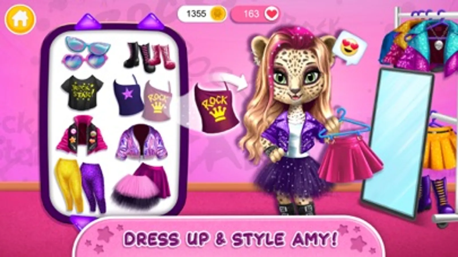 · Choose a rock star animal you want to play with - leopard Amy, panda Pandora, giraffe Rachel or Pomeranian puppy Pepper!