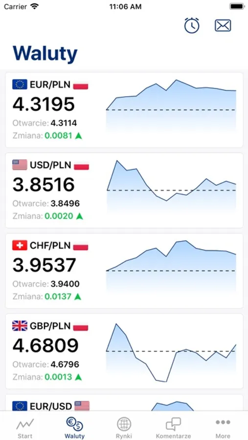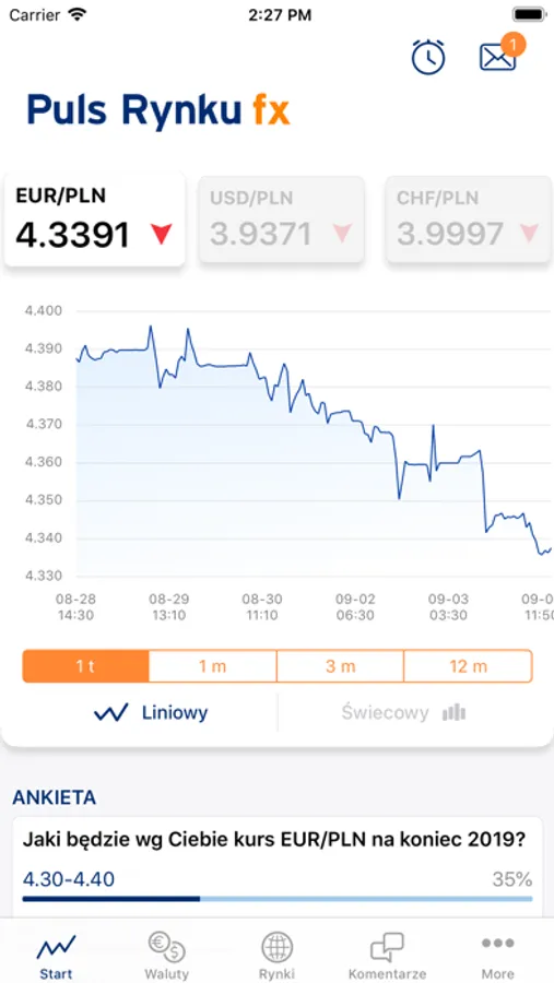 - pilne komunikaty walutowe i alerty