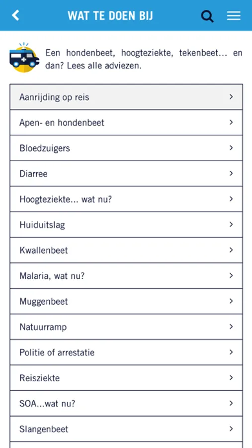 • Er worden reistips beschreven. Denk aan ‘Hoe voorkom ik dat ik wordt gestoken door een mug? ‘of ‘Hoe voorkom ik hoogteziekte’.