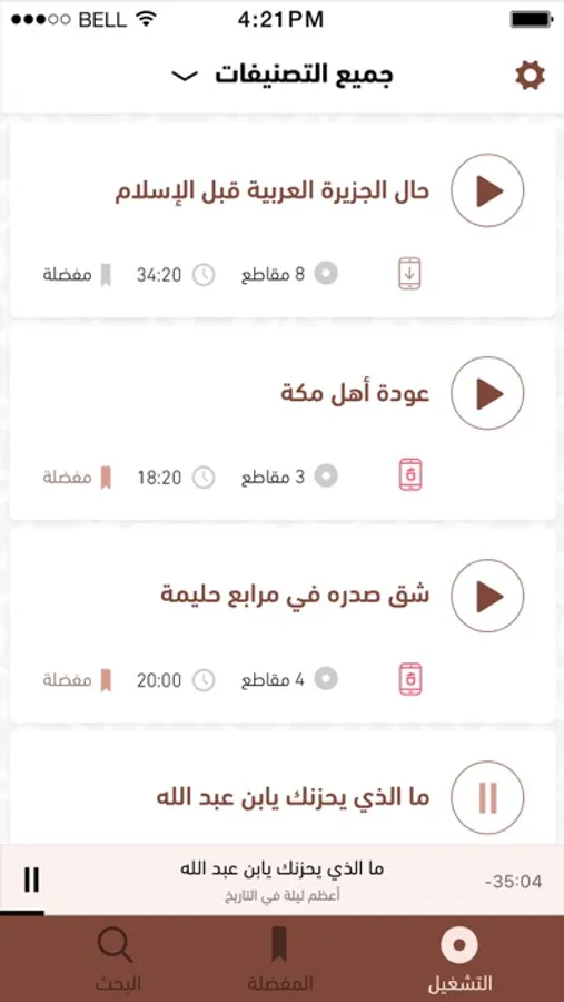 إمكانية تفضيل مقاطع محددة وتخصيص شاشة مخصصة للمفضلة.
