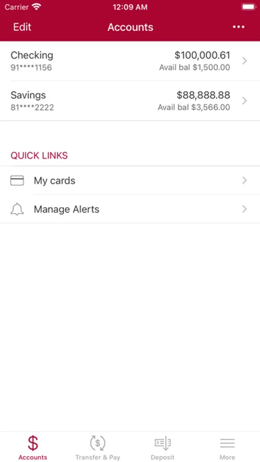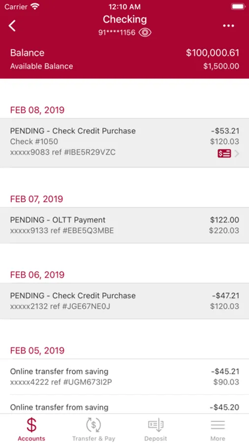 We never transmit your account number (your accounts are referred to only by nicknames), and account information is not stored on your phone