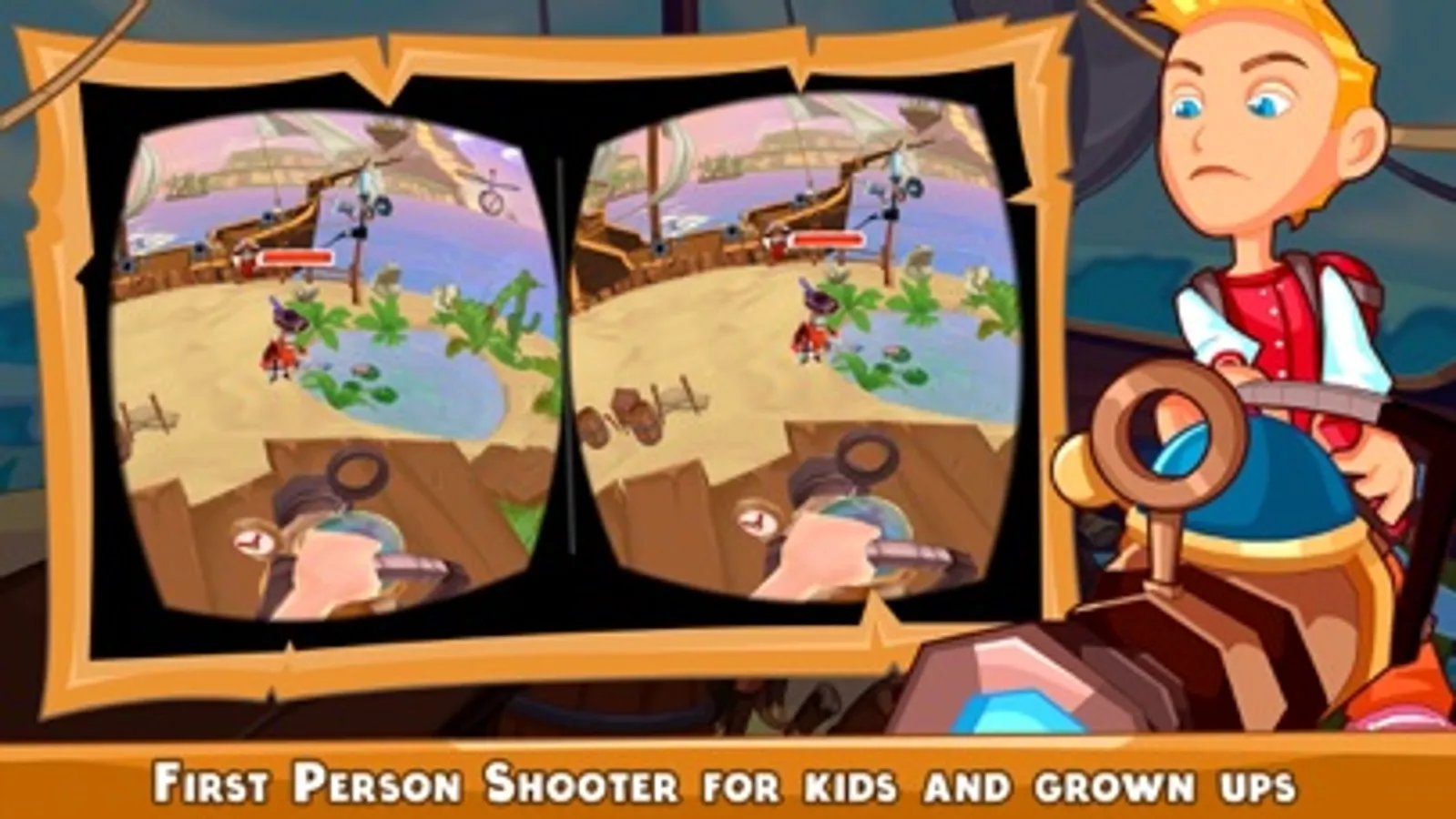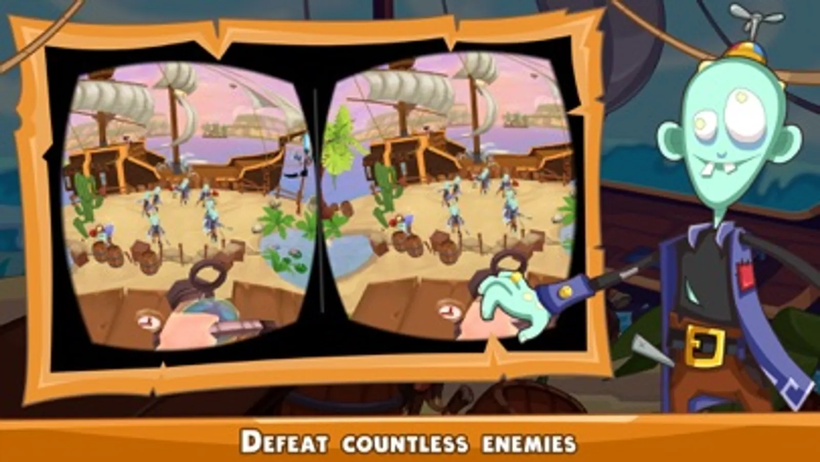 Protect your island from the zombie pirates in this 3D virtual reality shooter. Just put on your Google Cardboard viewer and start shooting oncoming attackers. Your trusty gun will shoot water balloons at the zombies.