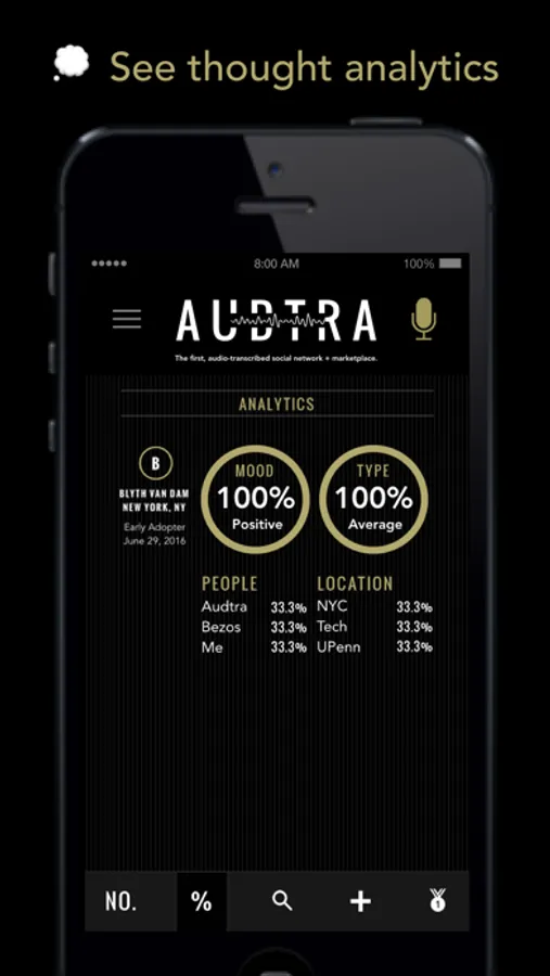 Broadening positivity by showing thought analytics (mood, recurrence, people, and location %), w/ no access to sell your data to the highest spammers—our favorites-only feed protects you from noise/unsolicited contact, so you can rise out of obscurity.