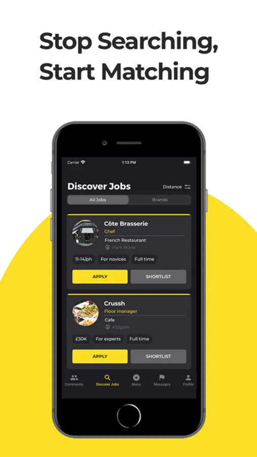 Forget the job hunt. Our job-search app is revolutionising UK recruitment by instantly matching you with jobs that suit your needs, values and lifestyle. Build your profile in minutes, sit back and let the algorithm find you your next awesome job. If you have a CV, great. If you don’t, we’ll create one for you with your profile and you can simply apply in just one tap!