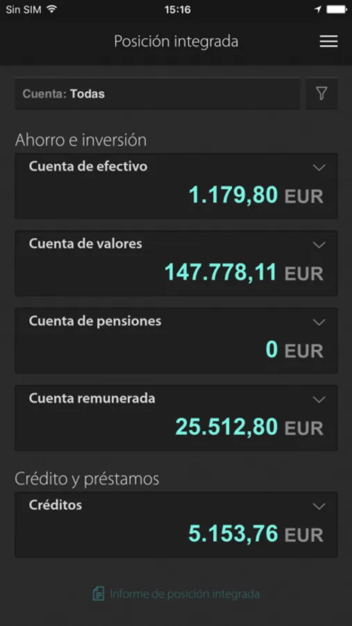 - Consultar la posición integrada y saldos, órdenes en mercado, cuentas remuneradas, movimientos de efectivo y tarjetas.