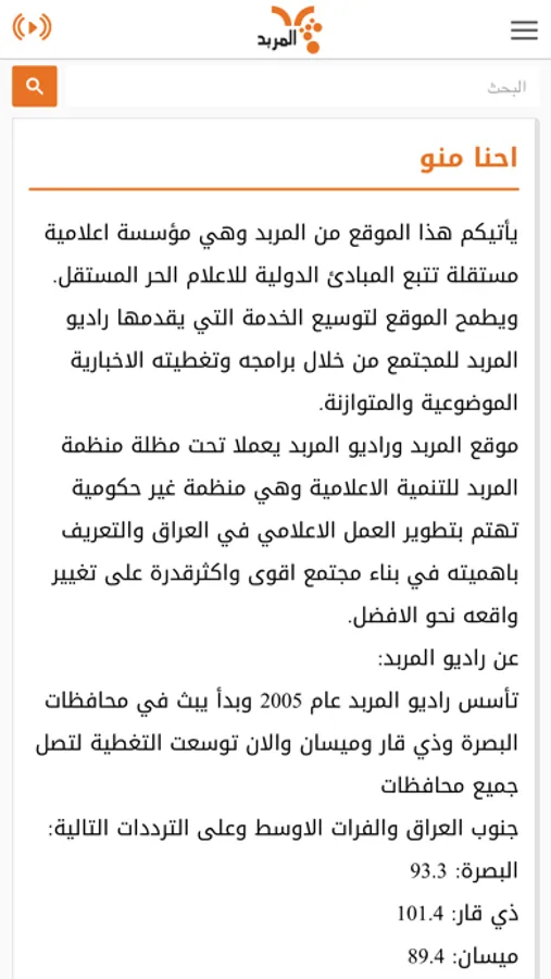 راديو المربد تأسس عام 2005 و بدأ يبث في محافظات البصره و ذي قار و ميسان
