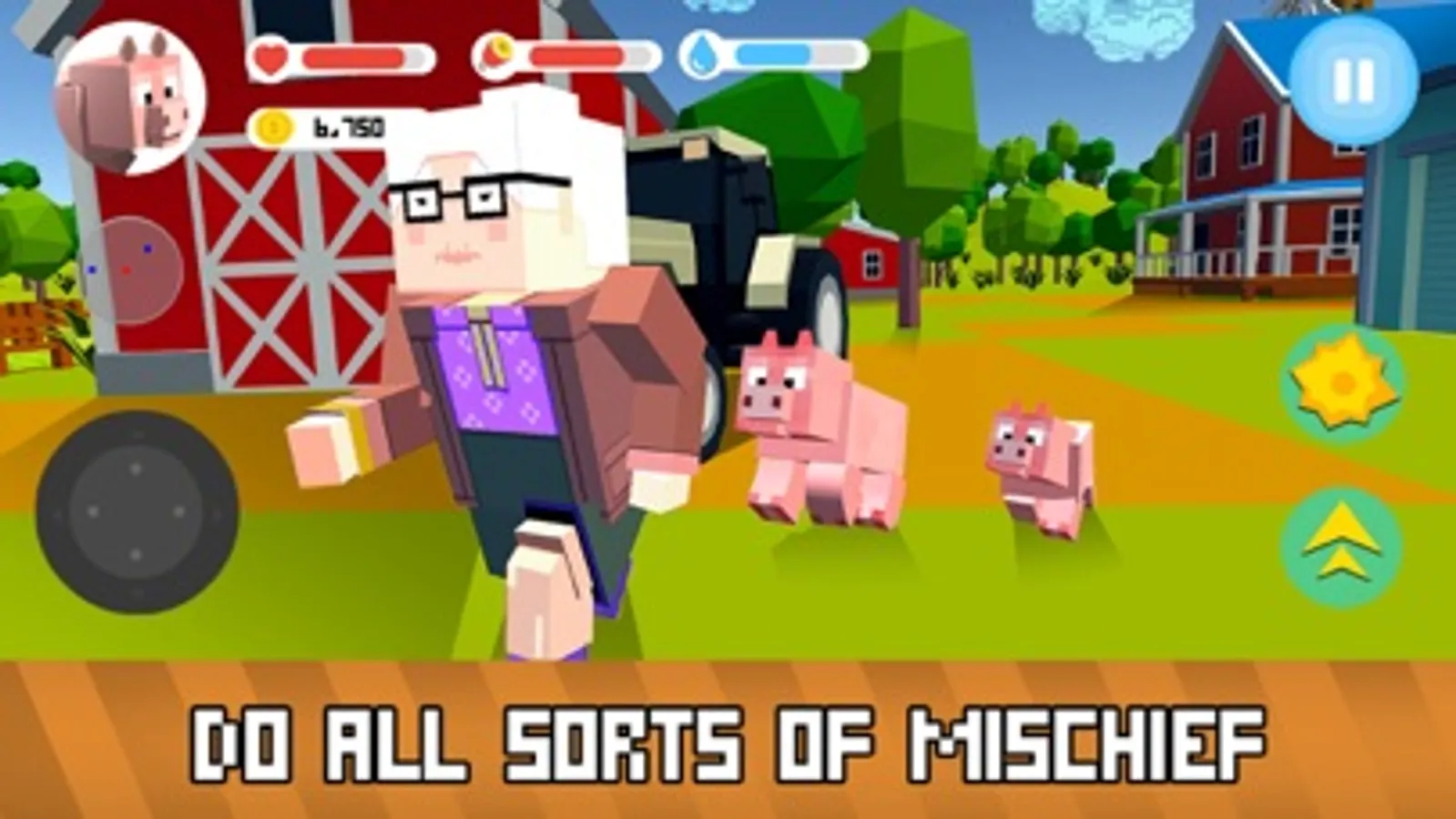Simulator has two big open location - blocky city and blocky farm. Live as a horse in town or wolf on a farm or choose other blocky animals of survival simulator, like pig, goat or pony. Levelup your blocky animals, complete quests as you explore crazy world of the simulator for fun and survival!