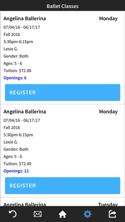 - Have a class in mind? Search by program, level, day, and time. You can even register right from the app!