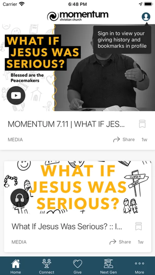 Connect and engage with the Momentum Christian Church app! You will connection to sermons, news of your campus, giving, and more!