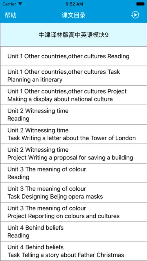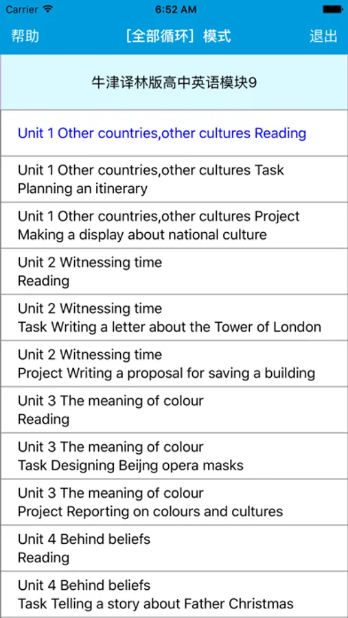 本应用对应牛津译林版高中英语模块9课本,具有跟读模仿,自动听写,变速播放的复读机功能。