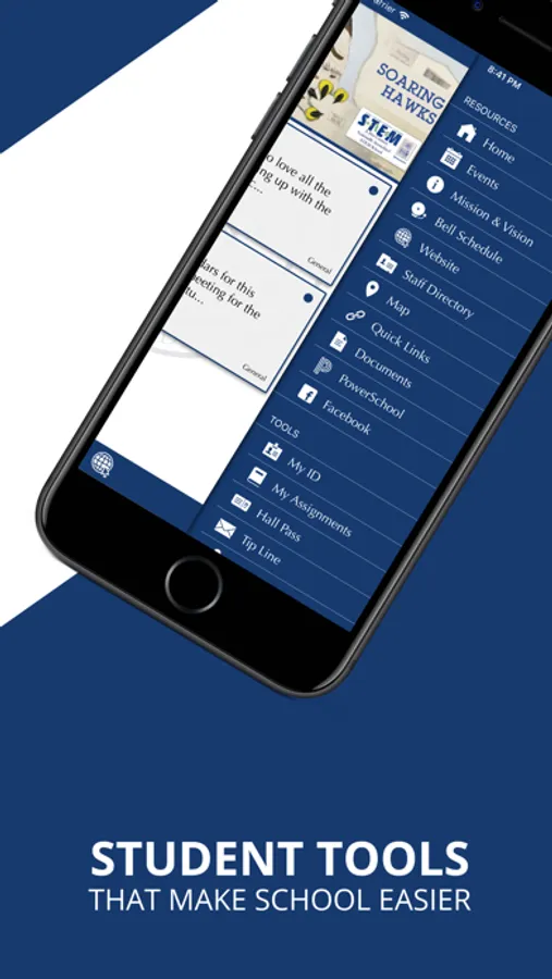 - Student tools including My ID, My Assignments, Hall Pass and Tip Line