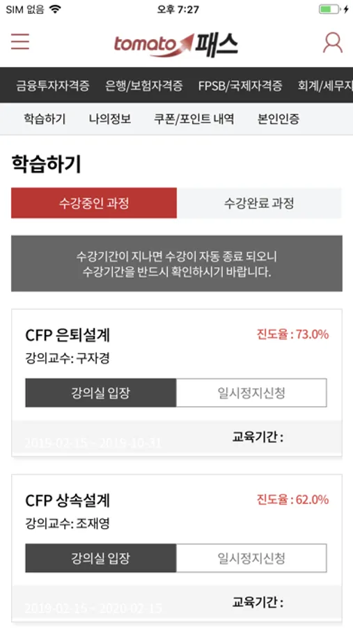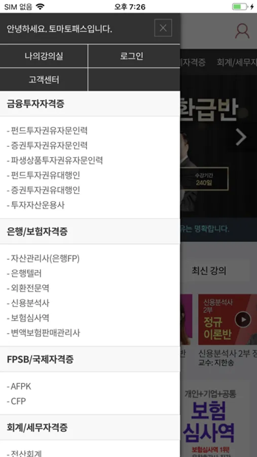 금융자격증 교육전문기관 토마토패스의 모바일 앱입니다.