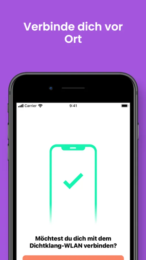 Dort wählst Du Dich in das „Dichtklang®-WLAN-Netzwerk“ ein. Und schon kann´s losgehen. Drücke den „Zuhören-Button“ und Du hörst den Stream, der übertragen wird.