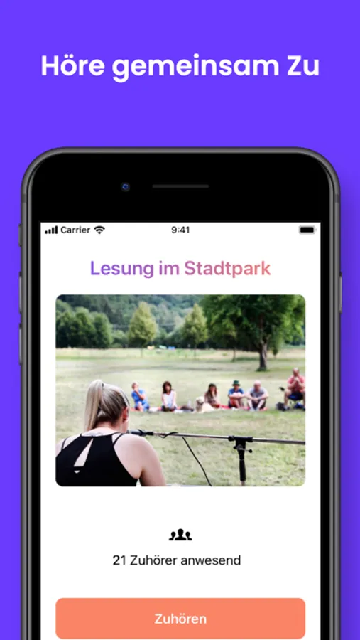 wo ich mich mit Hilfe von einem Smartphone (oder Tablet) mit Kopfhörer, inkl. der „Dichtklang®-App“, in ein bestehendes Netzwerk einloggen, einen Stream empfangen und zusammen mit anderen Teilnehmern zuhören kann.