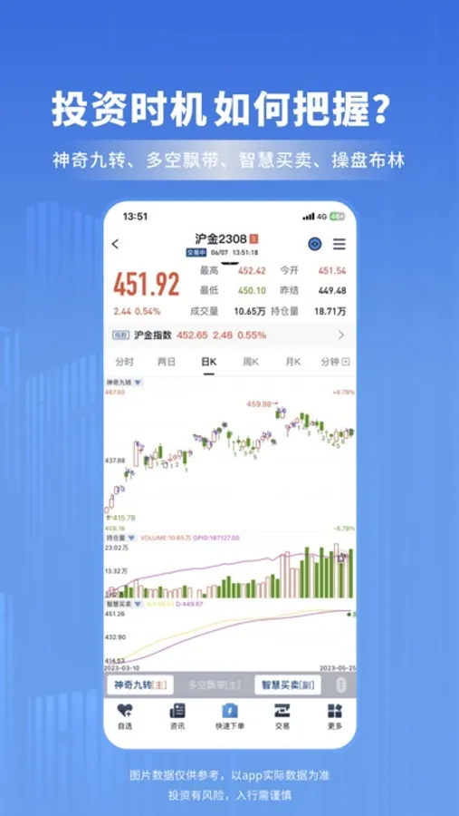 行情交易:国内期货交易所全品种覆盖,提供准确实时的行情,期货和期权任意切换,让您的交易更快捷。