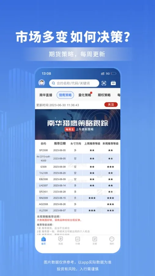 南华期货是国内主板上市期货公司(股票代码:603093 ),为投资者提供一站式财富增值平台。南华期货APP为您提供全方位期货行情、线上极速交易、手机在线开户、权威资讯内容,是期货投资者首选期货软件。
