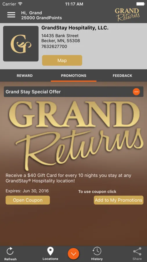 We know guest loyalty is nothing to take lightly. That’s why we established our Grand Returns program to say thank you for choosing to stay with us. Whether you stay one night at a time or for an entire month long extended stay, get rewarded for every night you spend at one of our GrandStay® Hotels or Crossings by GrandStay®. Help yourself manage your personal information, setup your interests and preferences, get notified with upcoming/active promotions and many more. The Grand Stay app lets you monitor all your GrandStay tidings from your fingertips.