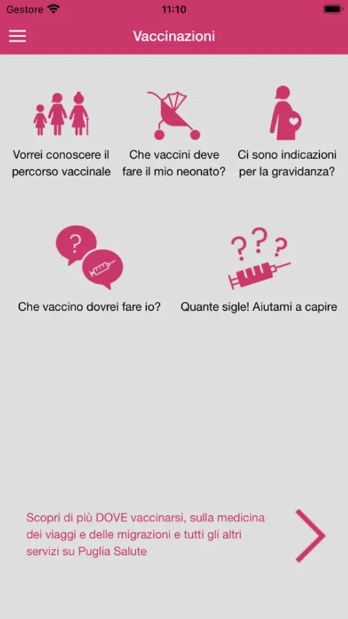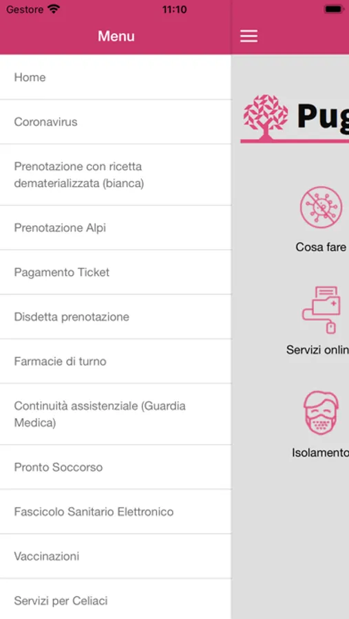 PugliaSalute offre l'accesso ai servizi on line della sanità pugliese: informazioni e localizzazione di tutte le strutture sanitarie regionali (ospedali e reparti, pronto soccorso, guardie mediche, ambulatori, CUP, RSA, etc.); news regionali e delle singole ASL; pagamento del ticket; disdetta prenotazione CUP; tempi di attesa in tempo reale dei Pronto Soccorso; prenotazione prestazioni con ricetta dematerializzata (bianca); servizi per celiaci; ricerca dei medici di medicina generale e pediatria.