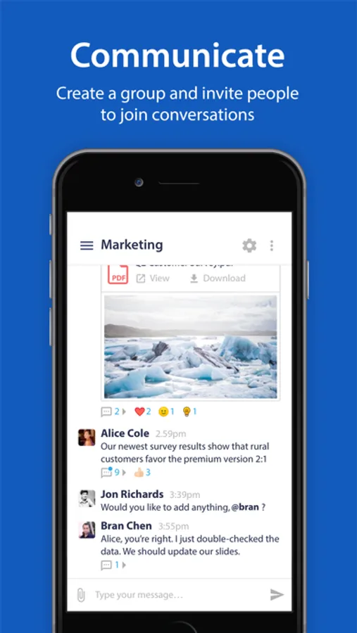 • Quickly see who's online, who's in the conversation, and who’s typing